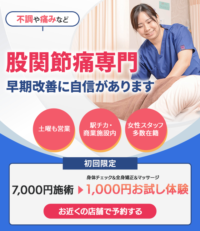 股関節痛を改善するためには、まずは原因を解決することが大切です。