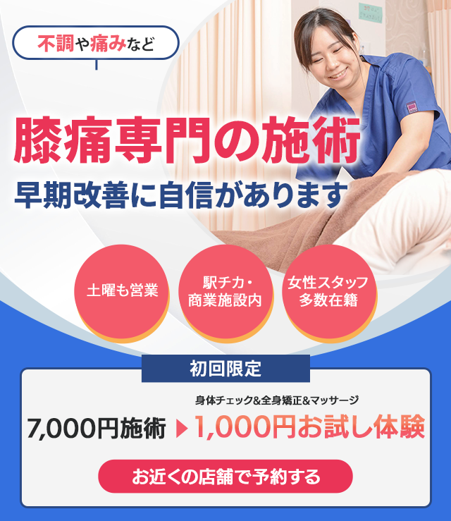 膝痛を改善するためには、まずは原因を解決することが大切です。