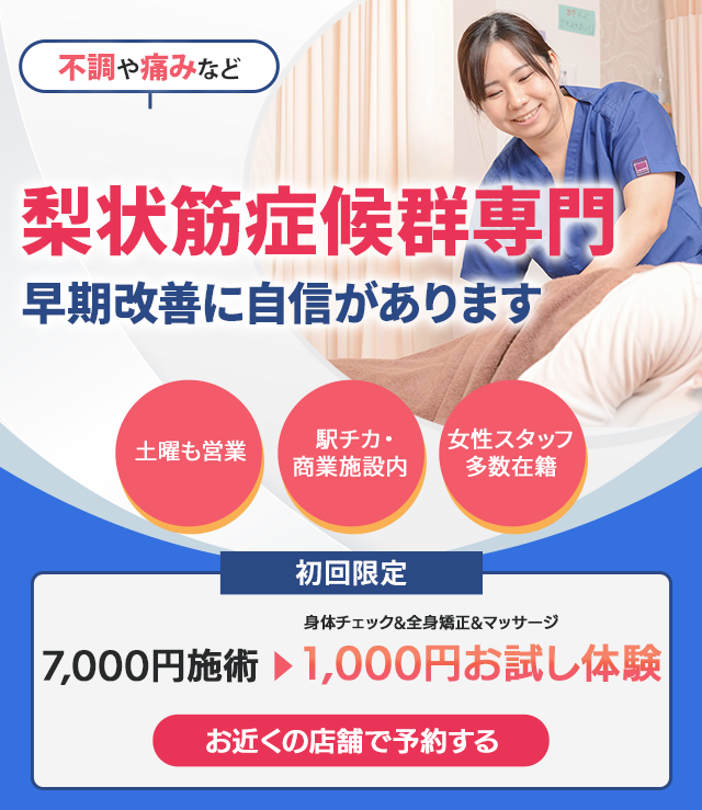 豊富な実績を持つ私たち専門家が、あなたのつらい梨状筋症候群を改善に導きます。