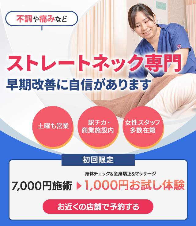 豊富な実績を持つ私たち専門家が、あなたのつらいストレートネックを改善に導きます。